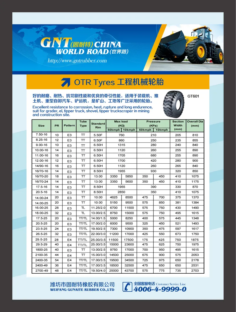 4. Los diseños de los neumáticos OTR sesgo apropiado para motoniveladoras, palas cargadoras y excavadoras que operan bajo